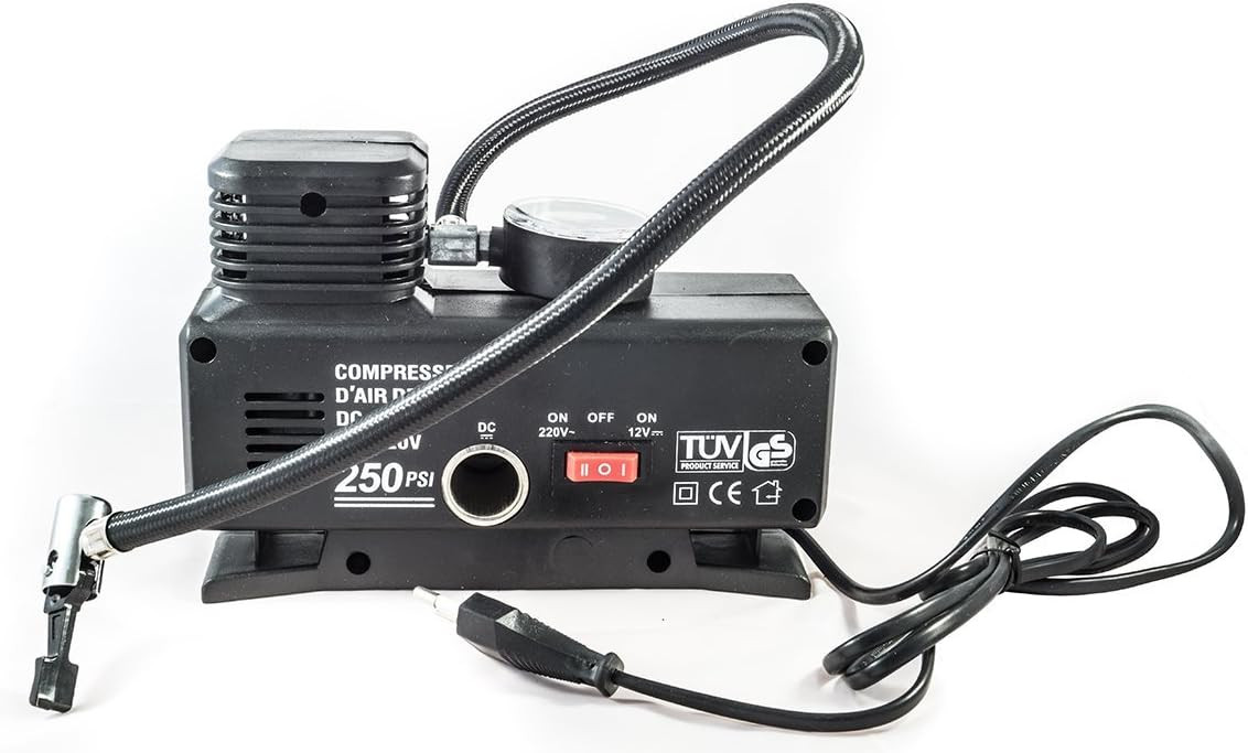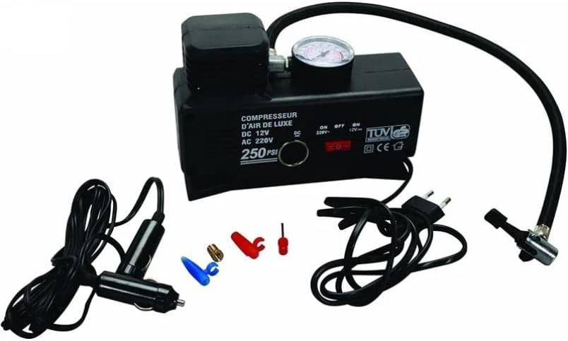 All Ride Mini compresseur d’air pour canots de sauvetage gonflables avec manomètre et adaptateur de voiture 220 V et 12 V