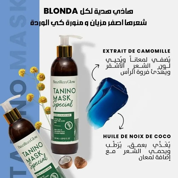 Brazilian Glow Masque Tanino Special Blond Hair – 250 ml – Soin Réparateur Cheveux Blonds