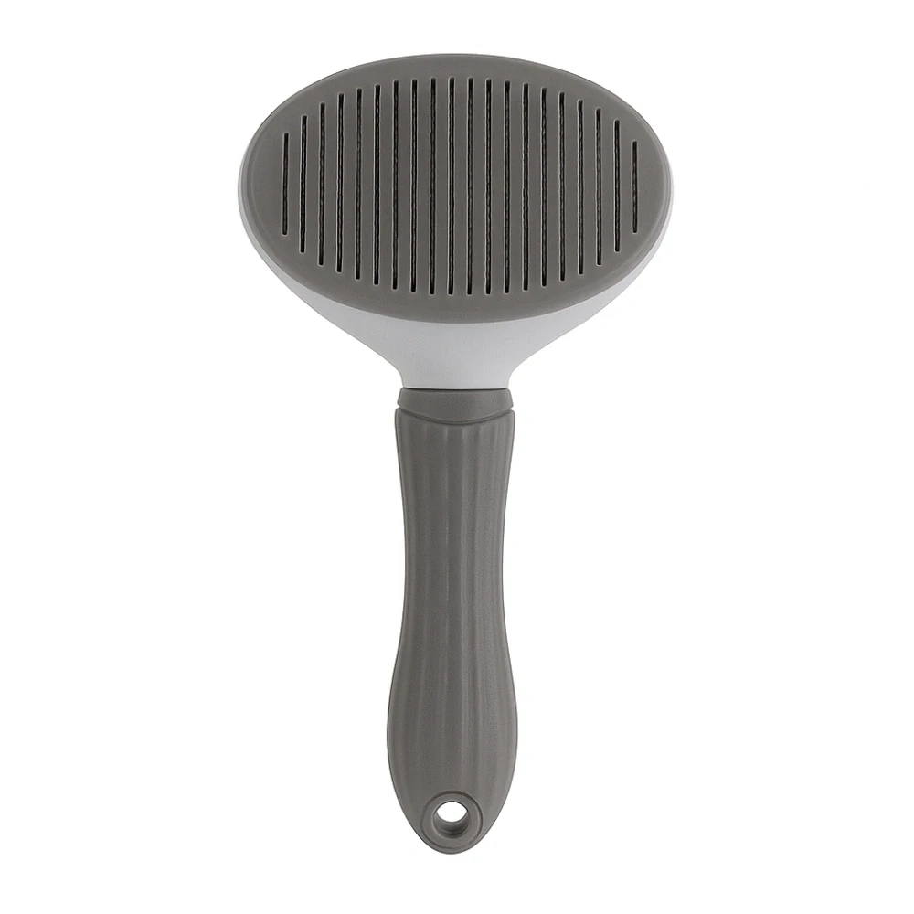 Brosse démêlante pour chat et chien avec bouton d’auto-nettoyage. Élimine poils morts et nœuds en douceur. Confortable, efficace et idéale pour tous types de pelage.