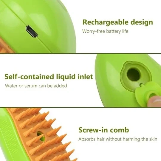 Brosse Vapeur 3-en-1 pour Chats – Massage, Démêlage et Toilettage