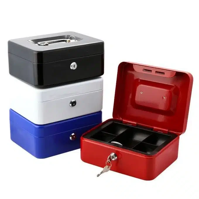 Caisse a monnaieCoffre-fortSûr et largement utiliséLivré avec 2 clésDimentions : 200*160*90 mm