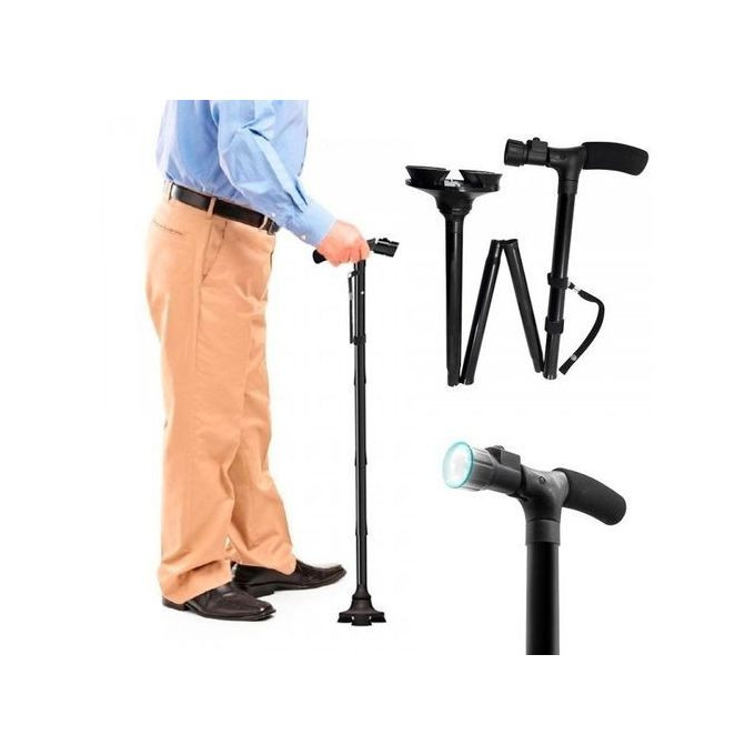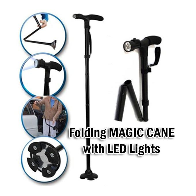 Profitez de la liberté d’aller où vous voulez. Le bâton de marche, vous donne la stabilité et le soutien dont vous avez besoin. Sa base extra-large sur la fin pôles avec charnière fonctionne bien sur des surfaces inégales et vous donne une sécurité supplémentaire. Magic Cane cessera par lui-même, si vous laissez le aller! Un éclairage réglable LED sur la poignée vous permet même de faire une promenade dans l’obscurité, comme il illumine le chemin et comme un bas de tomber peut être évitée. La canne est réglable de 86 cm à 95,5 cm.
