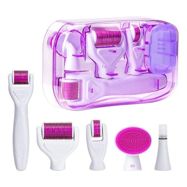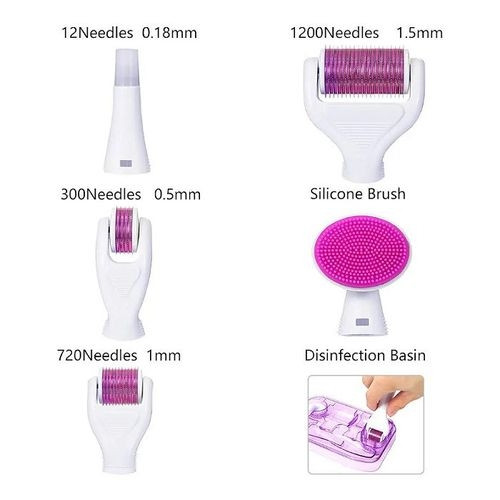 ✅ 6 en 1 : 4 têtes micro-aiguilles, 1 brosse en silicone, 1 bac de désinfection