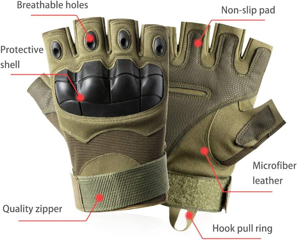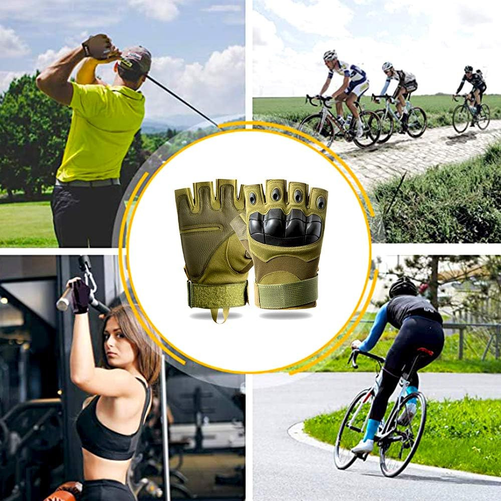Gants Tactique Demi-Doigts Hommes Femmes, Gants Vélo Respirant Anti-Choc pour Moto Escalade Chasse Randonnée Autres Sports Scooter