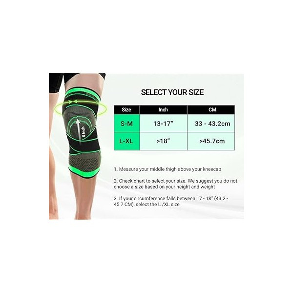 Taille des genouillères de sport pour hommes/femmes: La genouillère Meniscus est disponible en différentes tailles parmi lesquelles vous pouvez choisir. Ne vous inquiétez pas d’une mauvaise utilisation. Remarque : veuillez mesurer la circonférence de vos genoux au-dessus avant de commander. Veuillez vous référer à l’image du produit pour la mesure correcte et la taille requise.