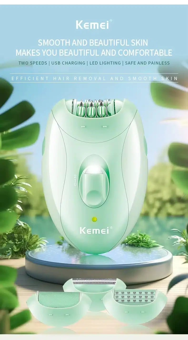Kemei – Épilateur électrique 4 en 1 pour femme rechargeable par USB, rasage, épilation, massage, pédicure KM-6037