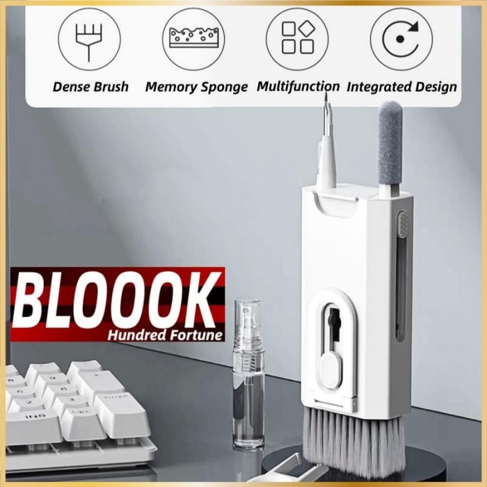 Kit de nettoyage électronique 8-en-1 : Comprend un stylo de nettoyage multifonction, une brosse à haute densité, un flacon pulvérisateur de 5 ml, un chiffon en fibre polaire, et un extracteur de touches pour clavier mécanique.