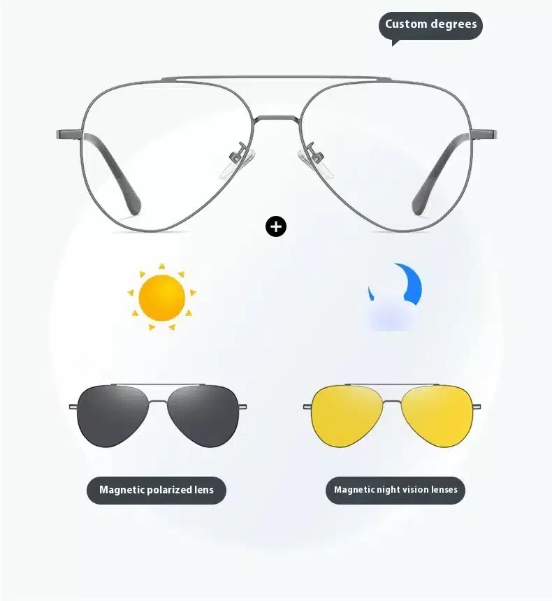 • Différents styles de verres : les verres jaunes pour la conduite de nuit. Les lunettes antireflets offrent une vision haute définition lorsque vous conduisez la nuit. L’autre verre est polarisé UV400. Il éliminera l’éblouissement et protégera vos yeux contre les dommages. La couleur spéciale du revêtement est plus tendance. Il s’adaptera bien à votre visage. Vous pouvez choisir n’importe lequel pour un port quotidien.