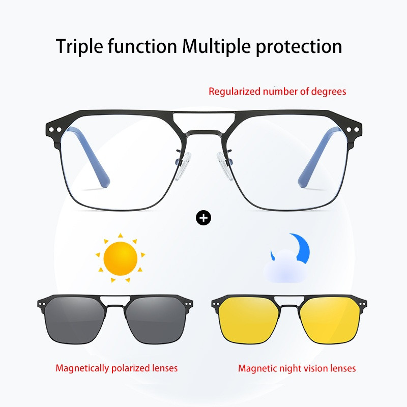 lunettes magnétiques 3 en 1 polarisées et pince de Vision nocturne combiner – cadre en alliage – bloquant la lumière bleue