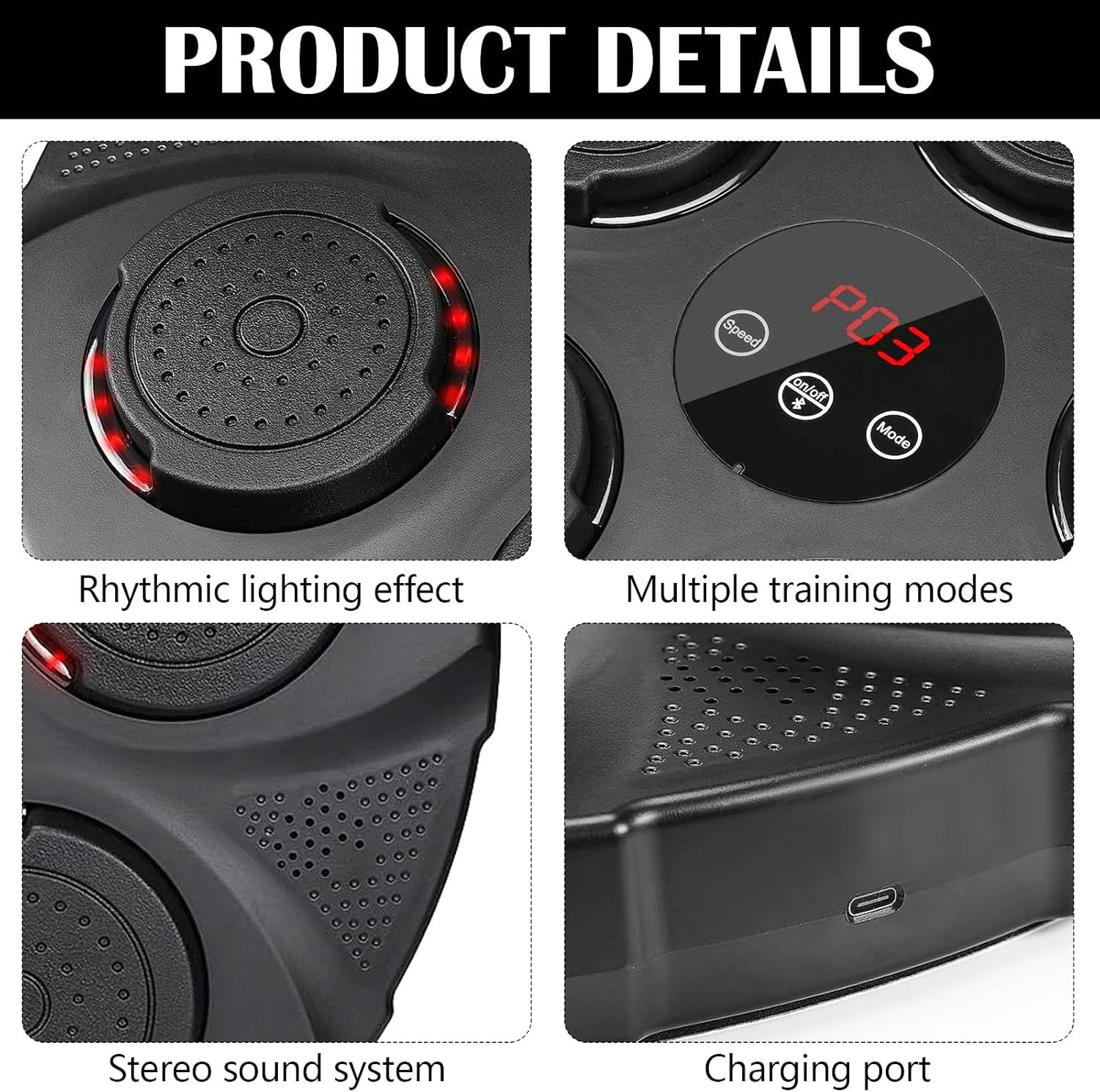 3. Détection intelligente et rétroaction: Avec un rythme lumineux RVB et un retour sonore lors de l’impact, le jeu de boxe intelligent offre une expérience dynamique et divertissante. Le mouvement aléatoire des points clignotants défie et améliore les capacités de réaction, ce qui en fait un moyen attrayant d’exercer et d’améliorer les réflexes.