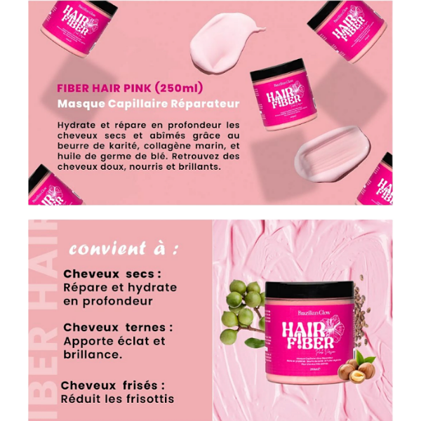 Masque Capillaire Réparateur FIBER HAIR PINK Brazilian Glow doit être acheté par multiple de 1