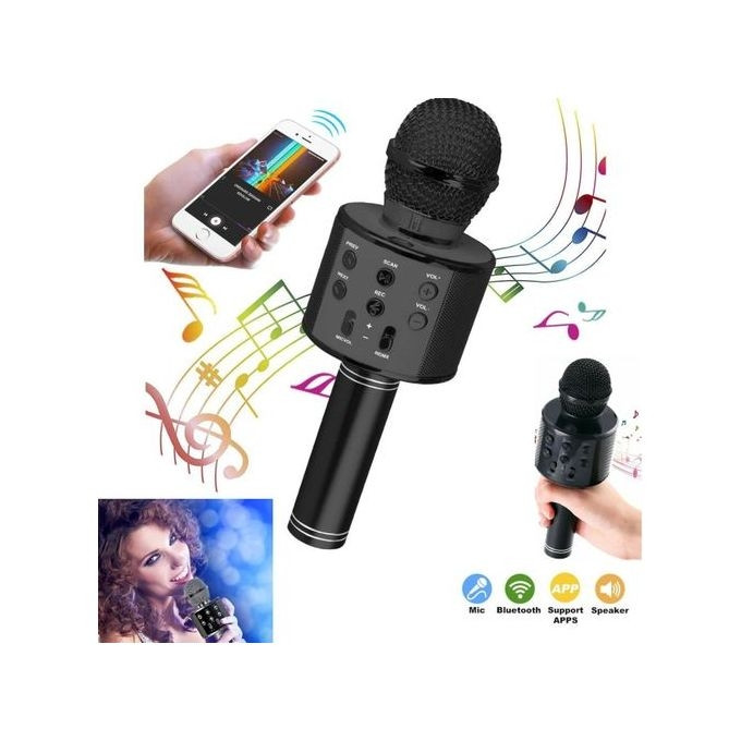 Microphone Karaoké avec Haut Parleur USB Noir