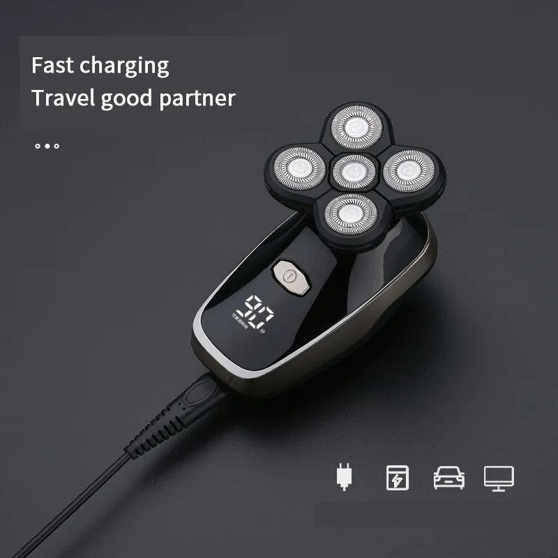 Rasoir électrique pour homme, IPX7 étanche Rasoir rotatif,4D flottant 5 têtes de rasage Daling DL9241