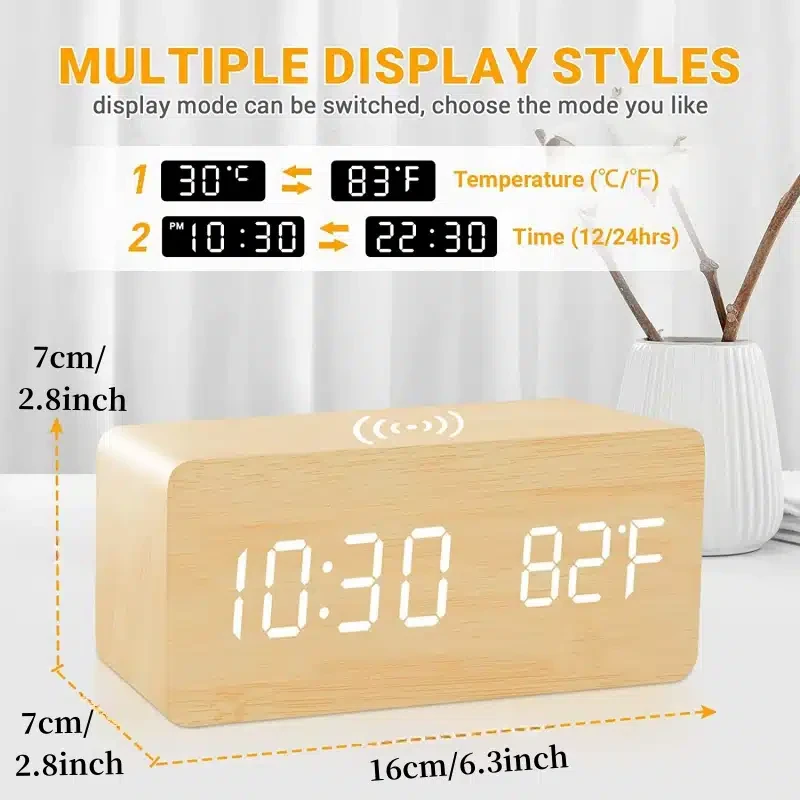 1. Chargement sans fil: dans l’état de prise directe de l’alimentation du réveil, placez le téléphone portable sur le dessus du produit, peut être chargé