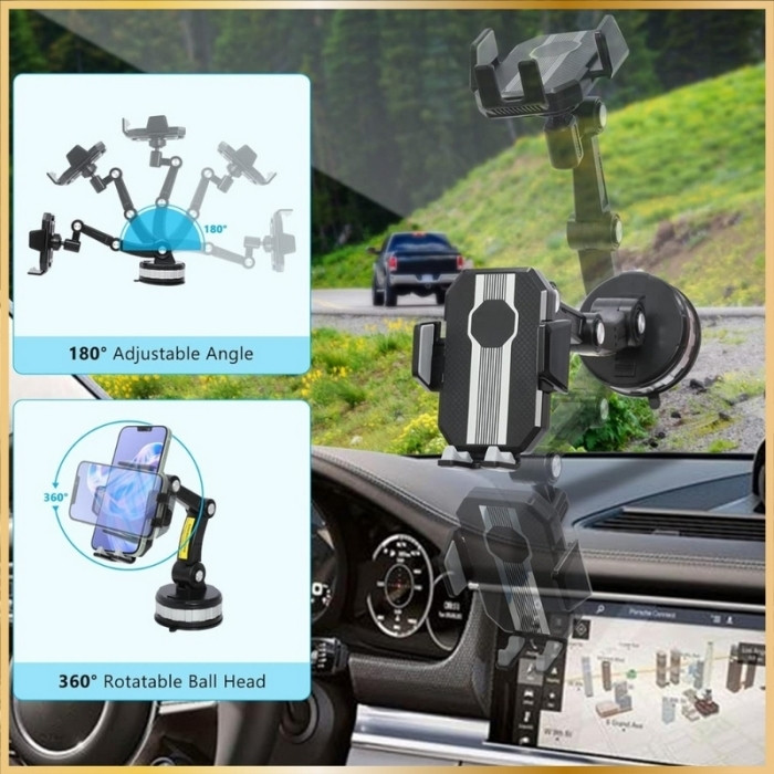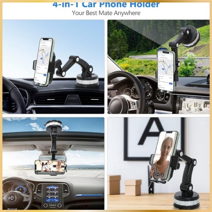Support Téléphone Voiture 4-en-1 – Ventouse Ultra Puissante – Rotation 360° – Compatible Universel