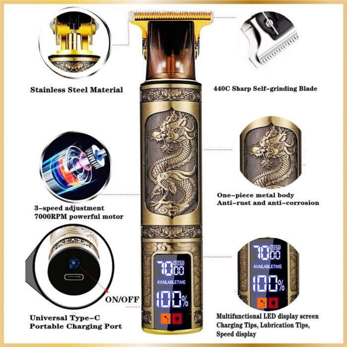 Tondeuse à Cheveux Professionnelle T9 – Sans Fil, Afficheur LED, Haute Précision